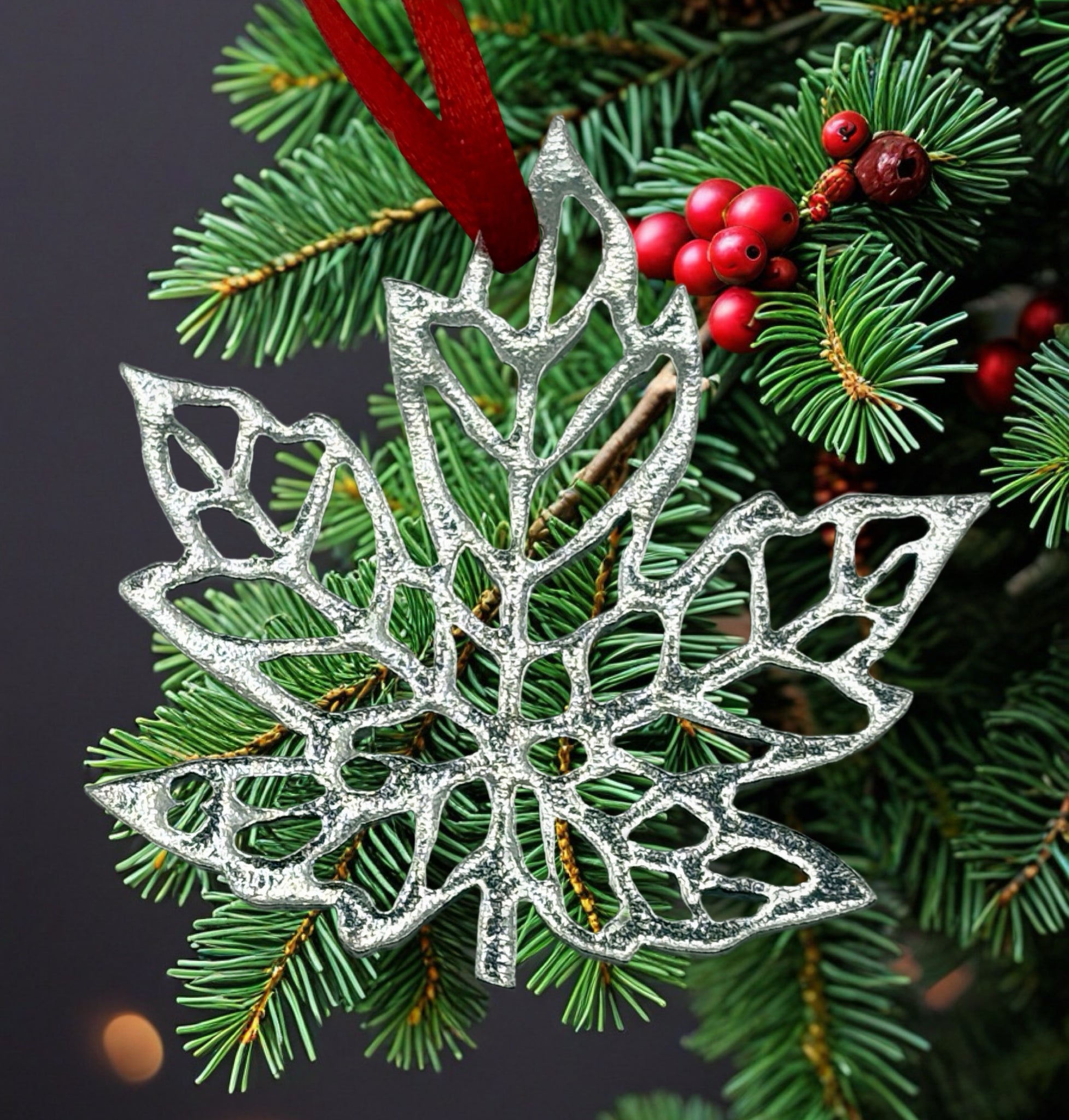 Christmas ornament made of fine pewter. Maple Leaf - 2½" high